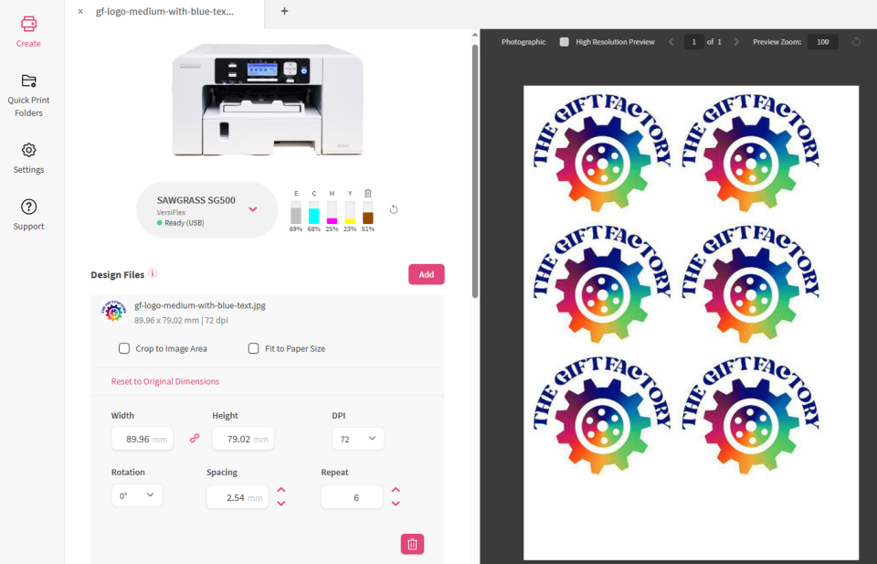 Designed to harness the unrivaled efficiency of your powerful Sawgrass printer and cutting-edge software to maximise the utilisation of your paper and ink, allowing you to save money and enhance the consistency of your prints.