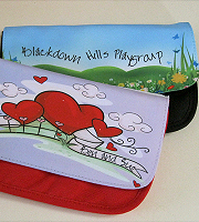 A range of children's rucksacks, a clutch bag with a printable front flap, and a range of image bags all available with optional extra flaps.
