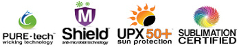 We also offer the very popular sublimatable socks in three lengths, 3" leg (ankle), 7” leg (crew) and 11” leg (training) each in three sizes and compression sport sleeves in three sizes.